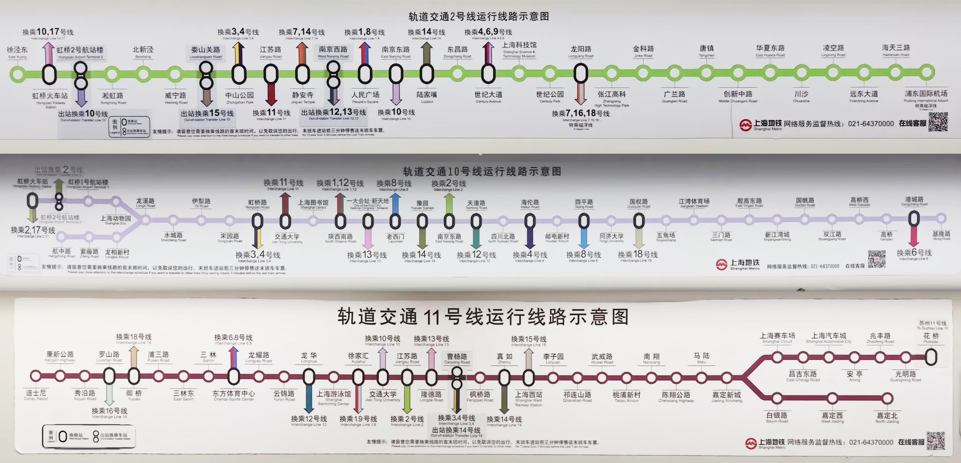 - 2호선(녹색): 푸동 국제공항(PVG, 浦东国际机场)을 도심 및 난징루(Nanjing Road, 南京路), 루자쭈이(Lujiazui, 陆家嘴), 인민광장(People's Square, 人民广场) 등의 유명 명소와 연결합니다.