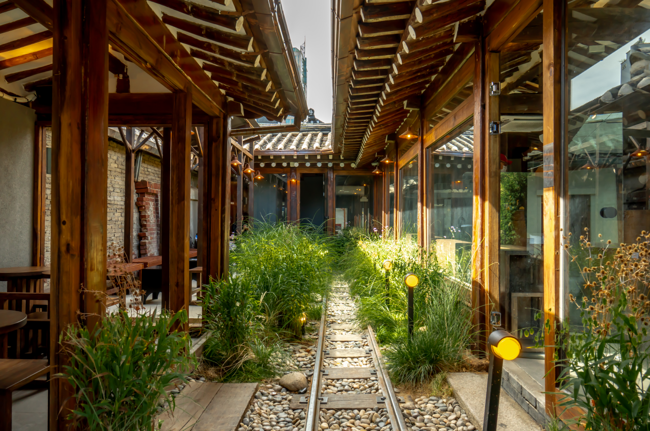 카페에 엉뚱함을 더한 곳은 낙원역 카페입니다. 아늑한 한옥 환경 너머에는 입구에 실제 기찻길이 있다는 독특한 특징이 있습니다. 이 기발한 요소는 인스타그램 애호가들 사이에서 인기를 끌 뿐만 아니라 전통적인 카페 경험에 재미있는 변화를 더해줍니다.